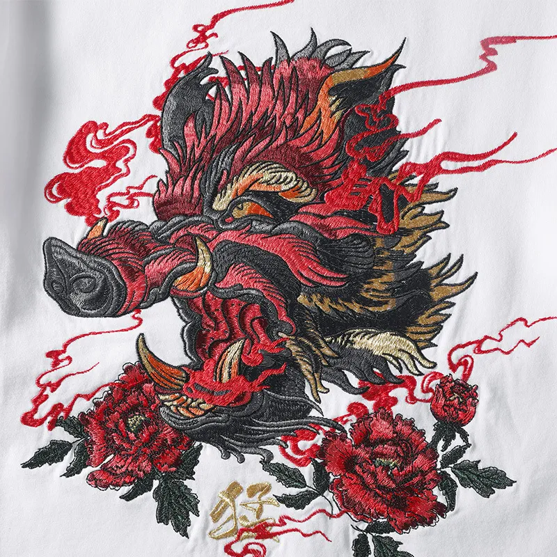 Anniv Coupon Below Mens Hip Hop Warthog Wild Boar Tattoo T Shirt Japanese Style Animal Heavy Embroidery T Shirts For Man Hip Hop Loose Tees High Quality From Jackhuang 15 74 Dhgate Com